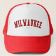 Check out this Milwaukee hat! Are you from Milwaukee, Wisconsin? Do you have a friend or family member who loves Milwaukee, Wisconsin? If so, this "Banner" hat is exactly the gift that you're looking for! The design features "Milwaukee" in arched red lettering in the classic College font.