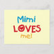 Mimi Loves Me T-shirts, cards, stickers, bodysuits bags, and more with colourful red, yellow, and blue text and heart design. These Mimi Loves me apparel and gift items will make mimi smile!
