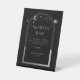 Mimosa Bar Mystical Black Silver Sun Moon Stars Astronomy Celestial Cosmic Galaxy Space Wedding Event Pedestal Sign features a silver coloured sun, moon and stars frame on a black background. Inside is your custom text. Designed for you by ©2022 Evco Studio www.zazzle.com/store/evcostudio