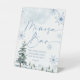 Blue winter wonderland baby shower, and bridal shower sign with pine trees and snowflakes.