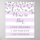 Mimosa bar sign poster for baby shower, bridal shower, or wedding in light purple lavender and white stripes pattern with silver confetti, please note silver is photographic effect only. Perfect for a baby shower, wedding, or bridal shower.
