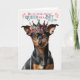The dog mum of an adorable Min Pin dog is sure to be thrilled when she receives this cute birthday card featuring none other than a Miniature Pinscher in a crown.