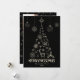 This design features a minamalist Black and gold christmas tree silhoutte made up of christmas illustrations such as snowflakes, holly and berries, reindeer, bells, candy cane and more. You can customise all the text. On the back is a 3 photo collage layout where you can upload your own family photos. You can remove the creator credit to ensure that your photos are not covered by the zazzle qr code. See the whole matching collection.