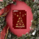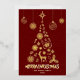 This design features a minamalist Dark Red christmas tree silhoutte made up of christmas illustrations such as snowflakes, holly and berries, reindeer, bells, candy cane and more. You can customise all the text. On the back is a 3 photo collage layout where you can upload your own family photos. You can remove the creator credit to ensure that your photos are not covered by the zazzle qr code. See the whole matching collection.
