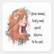 The size is perfect and the design has a softness with the beautiful flowers around the edges. The black lettering on the white background is sharp. It stands out beautifully. I love the Mixture of font styles as it catches the eye.