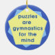 Puzzles are gymnastics for the mind text in a yellow and blue design makes a unique design for family and friends at birthdays and holidays.