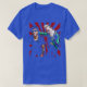 I give wanted to give this a 4 instead of a 5 because these Basic DARK T0shirts run unexpectedly SLIM or Narrow. Which is great if you do not have a potbelly, but I have a paunch. It isn't the shirt's fault that I've got a beer belly. The design and shirt itself is a quality cotton shirt. The color is more of a deep purple, but still a very pretty color. The Basic DARK T-shirts run a bit SLIMMER than the Basic Ts. The neck is a fraction narrower (or seems to be narrower) also. I'm a paunchy middle-aged woman and my neck is 12 inches (31cm) thick and the neckline fell about the same as in the photo of the man, and I had the desire to tug it a bit. So if you're a thick necked man or like loose shirts, be aware these are slimmer shirts. Once I get rid of my lockdown paunch it'll look great. The shirt washed well in cold water with no apparent bleeding. We don't have a dryer, so it hung dry. Did not shrink. Love the colors and the design. The design looks smaller on my shirt than it does on the model on-line. But still, it looks good on the shirt. The printing looks as it does on the model, just the size seems fractionally smaller. Washed garment in cold water, hung dry and design appeared unaffected.
