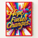 A vibrant design where multi-coloured text "Hope Fuels Changes." radiates with energy, each letter gleaming with golden accents that symbolise hope’s power to transform. The lively hues blend together in harmony, evoking a sense of optimism and renewal, while the golden highlights add an inspiring touch of warmth and promise. "Original Image was generated by Meta AI. AI generated artwork. Licensed under CC BY-SA 4.0.