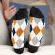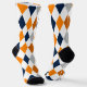 Oversized elegant argyle pattern in school colours of orange and navy blue. Perfect for wearing to support your Texas school team at the office or on game day. Design comes in maroon and grey, burnt orange and grey, red and black, green and black, orange and navy, green and yellow, and purple and grey to match major state schools. Matching products available.