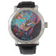Mineral chalcopyritel stone look black blue gold watch