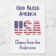 God Bless America USA flag stencil with ample space for your family or business name on this modern 2"x3" mini wine bottle label. Easily change add-to or remove the navy blue text to make it yours using the Template provided. Each set includes 10 matte labels, scratch-resistant and waterproof. See "About This Product" at side for more information.