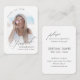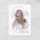 Black and white simple mini size graduation announcement and Invite features modern script and arch shape with photo , elegant and fun, Custom it with your own photo and grad party information in the back.