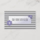 This double-sided, fully customisable business card template has a sleek, simple and elegant design with grey and white stripes and purple flowers. This is the perfect card to include with your mini-facial samples.