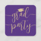 These graduation invitations are small in size but big on stylish simplicity. Announce the graduate's achievement and invite family and friends to celebrate with elegant mini graduation party enclosure cards. The small square business card size makes them easy to insert with graduation announcements or to hand out to family and friends (they do not come with envelopes.) Sold in packages at an affordable price, these inserts offer a chic option to stay within a budget. The wording on this template is simple to personalise, and the colours can be customised using the the Zazzle design tool. The modern purple and gold design features handwritten style script calligraphy with a mortar board cap and elegant classic typography. Please note that gold is printed colour, not metallic foil. This graduation invitation card is a unique way to announce a special day celebration. Congratulations to the graduate!