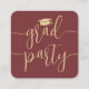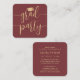 These graduation invitations are small in size but big on stylish simplicity. Announce the graduate's achievement and invite family and friends to celebrate with elegant mini graduation party burgundy and gold enclosure cards. The small square business card size makes them easy to insert with graduation announcements or to hand out to family and friends (they do not come with envelopes.) Sold in packages at an affordable price, these inserts offer a chic option to stay within a budget. The wording on this template is simple to personalise, and the colours can be customised using the the Zazzle design tool. The modern maroon red and gold design features handwritten style script calligraphy with a mortar board cap and elegant classic typography. Please note that gold is printed colour, not metallic foil. This graduation invitation card is a unique way to announce a special day celebration. Congratulations to the graduate!
