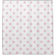 Shower curtain printed with polka dot pattern in soft pink on white background, from original watercolor painting.