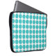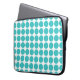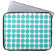 Cute and trendy Mini Polka Dots Laptop Sleeve. This design features small circle polka dots in turquoise and white. Text can be added to this design to give it a personal touch.