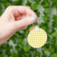 Cute and trendy Mini Polka Dots Keychain. This design features small circle polka dots in yellow and white. Text can be added to this design to give it a personal touch.