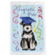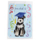 Congratulate your favourite graduate with a gift in a bag featuring a cute little Miniature Schnauzer graduate wearing a mortarboard amid a flurry of confetti.