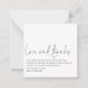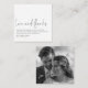A charming MINI size 2.5" square. PLEASE NOTE if you are in the US, the 2.5” square is smaller than the minimum US postage requirement so please choose size 5.25” x 5.25” square if you are intending to mail them (Note too that square cards may cost more to mail than rectangular ones). Elegant Script Black White Newlywed Photo Thank You. Love and thanks is in a set handwritten style with the details beneath. Lots of white space at the top for a contemporary feel! Easily personalise the rest of the text to your own details and replace the sample photo on the back with your own which will automatically change to black and white. If you wish to remove the black and white filter click customise further and chose the filter option and select No Filter.