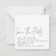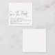 A charming MINI size 2.5" square. PLEASE NOTE if you are in the US, the 2.5” square is smaller than the minimum US postage requirement so please choose size 5.25” x 5.25” square if you are intending to mail them (Note too that square cards may cost more to mail than rectangular ones). Minimalist black and white design with informal script for the header and lots of white space on a square shape for a contemporary style.
