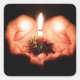 Mini Spray on several products. Small spray with candle in someones protective hands.