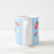 A sweet cute mug that features a delightful and playful pattern of scattered mini strawberries on a soft, sky blue background. The strawberries are rendered in a vibrant red with green leaves, and they are interspersed with small, delicate white or light yellow strawberry flowers, adding to the charm. The overall impression is cheerful, fresh, and sweet, making it ideal for children.