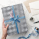 Mini Twilight Blue Gingham Check Pattern on White Wrapping Paper