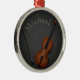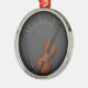 This charming ornament looks as of it has a miniature cello and bow inside. The instruments were drawn with a trompe-l'oeil effect to make them look 3-dimensional. The background of can be customized with a name or an inspirational word.