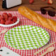 Miniature Checked Pattern in Lime Green and White Paper Plate