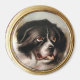 Elegant design with a bright 3D red ruby gem stone from Enamel miniature of Newfoundland "Bob", from Sir Edwin Landseer's 1838 painting "A Distinguished Member of the Humane Society" by William Essex (1784-1869).