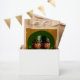 Miniature Leprechaun in 3D + "Happy St Patrick's Day" into a green circle + golden textured paper (image printed) as background. Design on favour bag.