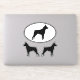 Oval and die cut sticker set. These durable dog silhouette decals are waterproof and scratch resistant. Stick these Miniature Pinscher vinyl stickers to your laptop, phone, notebook, water bottle, helmet, skateboard, or even your car. Visit Jenn’s Doodle World for even more dog breed vinyl decals and MinPin lover’s gifts.