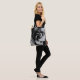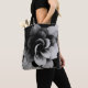 A modern tote bag featuring a minimalist abstract floral design in black and white.
