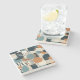This coaster features a minimal geometric abstract seamless pattern in a retro and vintage style. The bold lines and shapes create a unique, eye-catching design, perfect for adding a touch of classic elegance to your table.