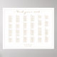 Chic and elegant wedding seating chart poster. This alphabetised seating chart features 6 vertical rows with approximately 36 to 40 names for each row. Versatile and simple, this template allows for easy customisation according to number of guests. The front carries a warm golden font against a white background and framed by a light taupe border. The back of the board has a lovely chic wheat colour.