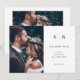 These elegant, modern wedding thank you cards feature a simple black and white text design that exudes minimalist style, with two of your favourite personal photos. Add your initials or monogram to make them completely your own.