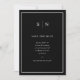 These elegant, modern black wedding save the date cards feature a simple white minimalist text design, with a classic frame at the border. Add your initials or monogram to make them completely your own and add your favourite personal photo on the back.