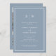 These elegant, modern engagement party invitations feature a simple dusty blue and white minimalist text design, with a classic frame at the border. Add your initials or monogram to make them completely your own. The back of the invitation features your favourite personal photo, plus a scannable QR code.