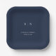 These elegant, modern wedding or bridal shower paper plates feature a simple dark navy blue and white text design that exudes minimalist style. Add your initials or monogram to make them completely your own.