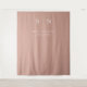 This elegant, modern wedding backdrop features a simple white text design, with your initials or monogram, on a neutral terracotta background.