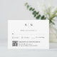These elegant, modern wedding RSVP response cards feature a simple black and white text design that exudes minimalist style. Add your initials or monogram to make them completely your own. This wedding response card serves as both a combo traditional rsvp your guest can return, as well as a QR code for those who prefer to rsvp online instead.
