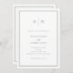 These elegant, modern all in one wedding invitations feature a simple white and sage green minimalist text design, with a classic frame at the border. Add your initials or monogram to make them completely your own. The back of the invitations feature room for your wedding details (reception info, hotel accommodations, etc.) and rsvp (including a scannable QR code so guests can respond online via your wedding website.)