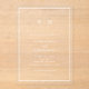 These elegant, modern clear acrylic wedding invitations feature a simple minimalist text design, with a classic white frame at the border. Add your initials or monogram to make them completely your own.