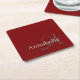 Minimal And Simple Red Monogram and Name Square Paper Coaster
