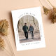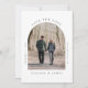 Minimal save the date announcement card featuring your photo in an arched picture frame and simple modern typography.