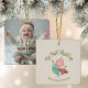 Minimal, gender neutral baby's first Christmas personalised keepsake ornament with photo on the back. Created from a hand drawn whimsical Christmas ornaments. Original art by Leslie Larson.