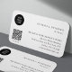 Elegant minimal typography custom logo, name, title, business details white business card simple easy to use template with scanning QR CODE to website or portfolio. Suitable for an architect, photographer, lawyer, realtor, professional corporate, technician, engineer, consultant, manager, supervisor, teacher, writer, journalist, publisher, content creator, freelancer, or blogger.
