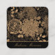 Minimal Black & Beige Elegant Flower Typography Square Business Card