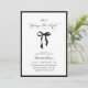 Sip, sip, hooray! Celebrate in style with this modern minimalist "She's Tying the knot" bridal shower invitation featuring a chic black bow. Designed for an elegant celebration, this invitation blends charm with refined simplicity, making it perfect for stylish and modern bridal celebrations. With its clean layout and contemporary aesthetic, this design sets the tone for a fun yet sophisticated event — ideal for anyone who loves modern details with a feminine touch.